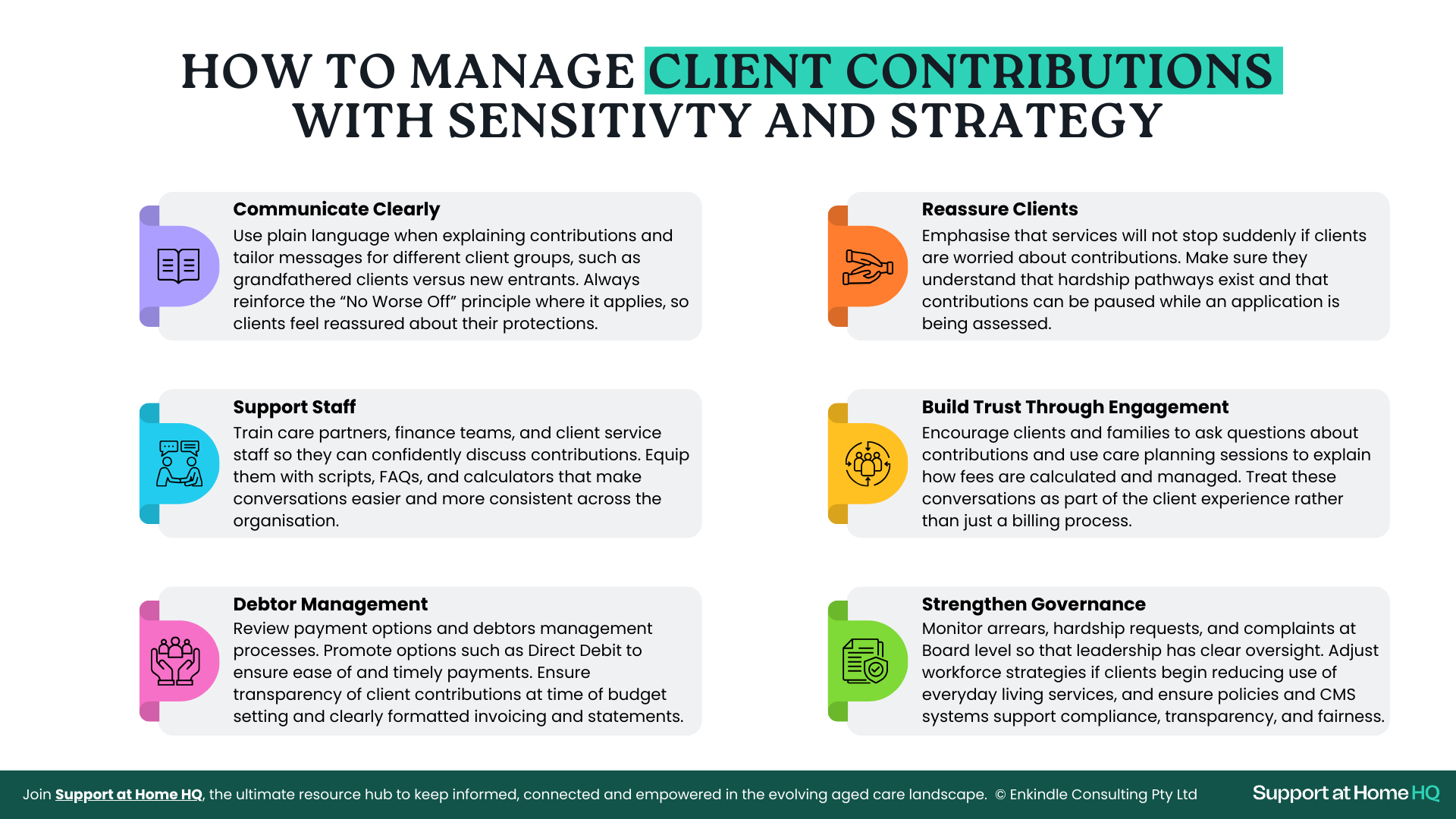 From 1 November 2025, the Support at Home program introduces a new client contribution framework that changes how aged care fees are calculated and paid. While clinical services remain fully government-funded, clients will now contribute towards independence supports and everyday living services, based on their income and assets.